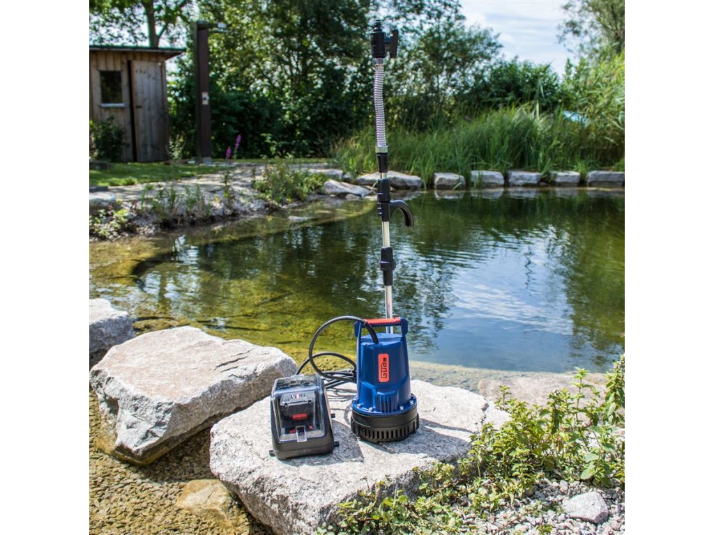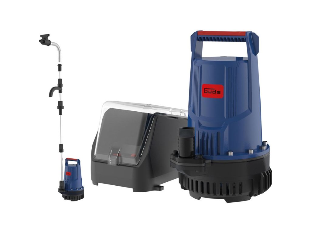 Ponorné čerpadlo GÜDE, určené k čerpání dešťové vody ze sudů, jímek, nádrží apod. • přečerpávání srážkové vody do kropících konví vč.jejího dávkování pomocí uzavíracího ventilu • přímé zavlažování trávníku nebo záhonů • oběžné kolo z termoplastu NORYL • ovládací skříňka na 3 m propojovacím kabelu • 3dílná vytlačovací trubice se závěsným hákem, ohybatelnou koncovkou a výpustným kohoutem • držadlo pro pohodlné přenášení