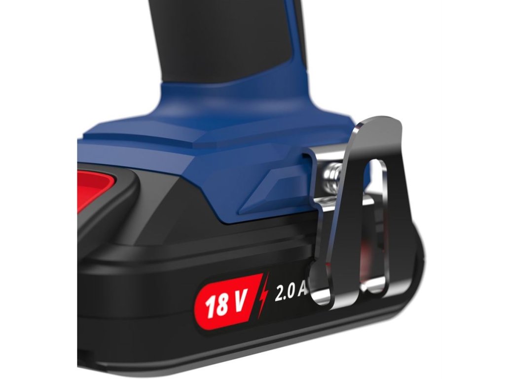Vybavení: Li-Ion akumulátor 18 V/2,0 Ah; nabíječka 3,0 A/h; sada vrtáků, 6dílná (HSS; pr. 1,5-2,5-3,0-4,0-5,0-6,0 mm); sada bitů, 6dílná (Cr-V; pr. 5-6 mm, PH1, PH2, PZ1, PZ2); plastový transportní kufřík.