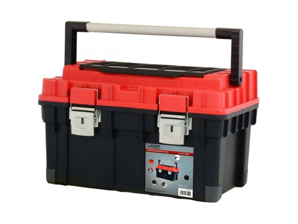 Vybavení: víko s integrovaným organizérem (-> 16 přihrádek různé velikosti), přepravka na nářadí, pomocná postranní madla.