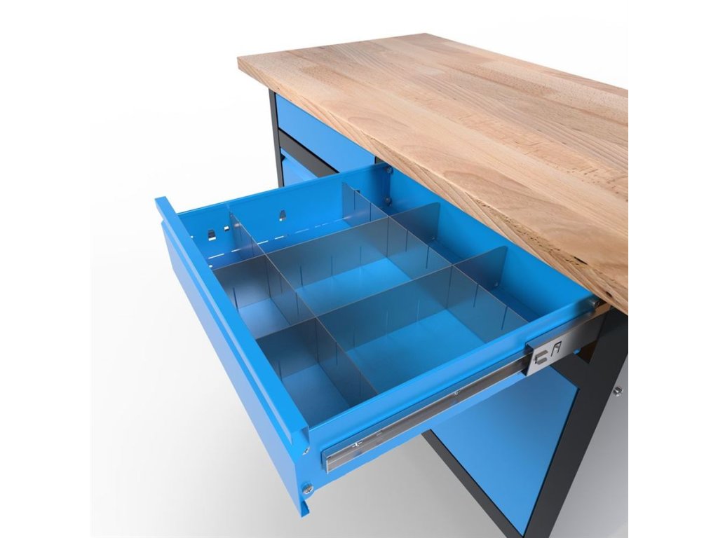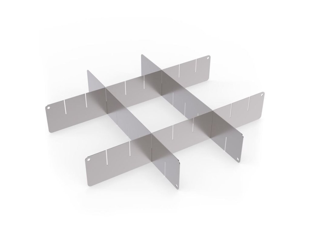 Přepážky GÜDE do zásuvky tvořené 4 dělícími plechy, pro zásuvky o rozměrech 440 x 400 x 115 mm.