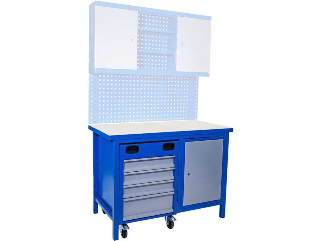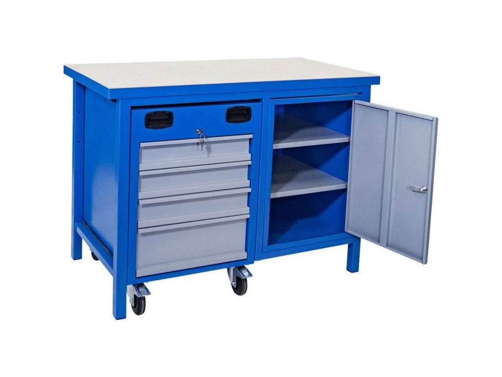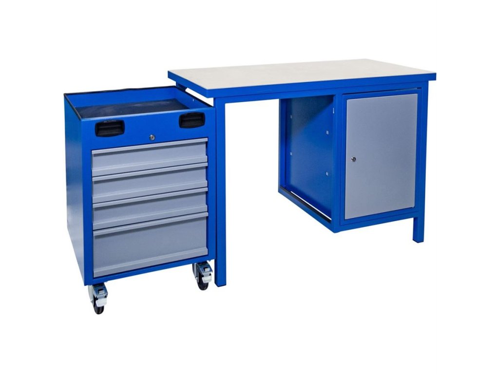 Pracovní stůl s pojízdným kontejnerem, určený k použití v domácích i servisních dílnách, výrobních provozech apod.