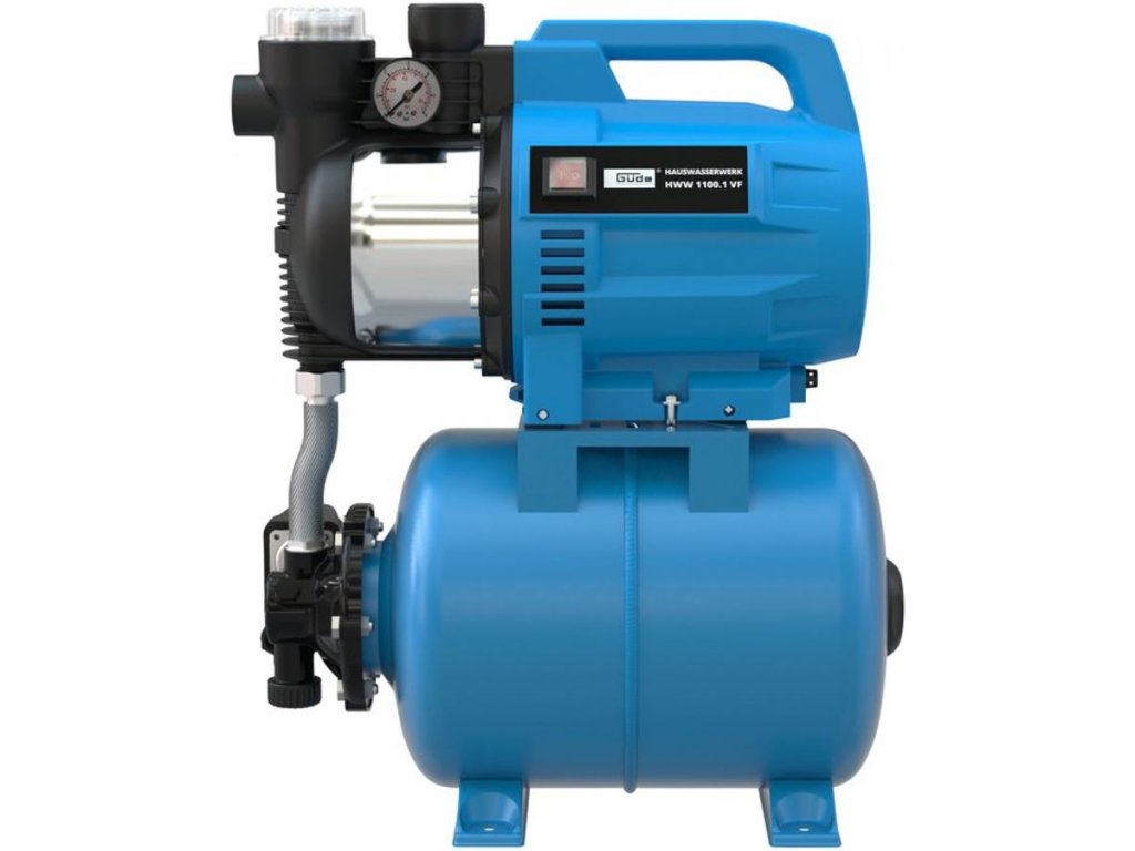 Automatická domácí vodárna Güde, určená k čerpání (čisté) užitkové vody za účelem zásobování domácnosti nebo zavlažování zahrady.