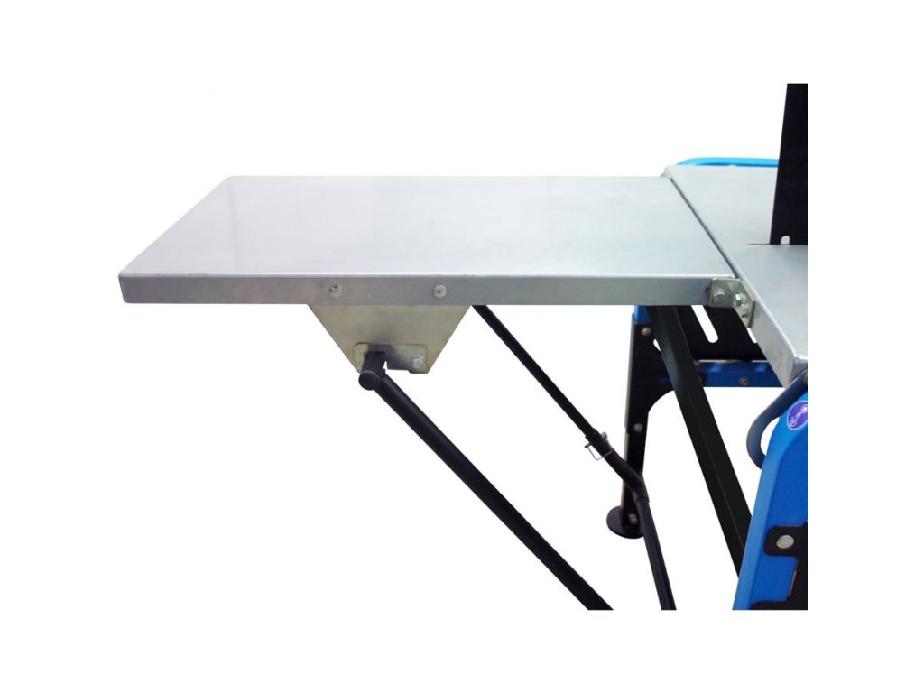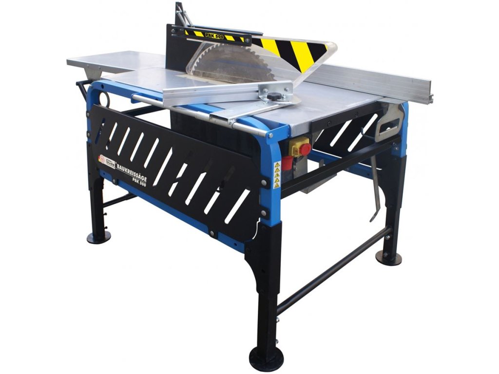 Konstrukce: robustní ocelový rám, velký pracovní stůl (-> rozměry d x š: 1.000 x 760 mm; včetně prodlužovacího stolku 720 x 400 mm), podélný doraz, přípojka odsávání, stojné nohy s výsuvnými patkami (-> k vyrovnání případných nerovností, např. při venkovním použití; max. délka vyložení: 110 mm).