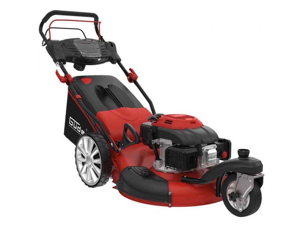 Benzinová sekačka Güde, určená k sekání rozlehlých trávníků s přírodními (umělými) překážkami - keři, živými ploty, zahradními skalkami, stromy apod. (2.200 m²).