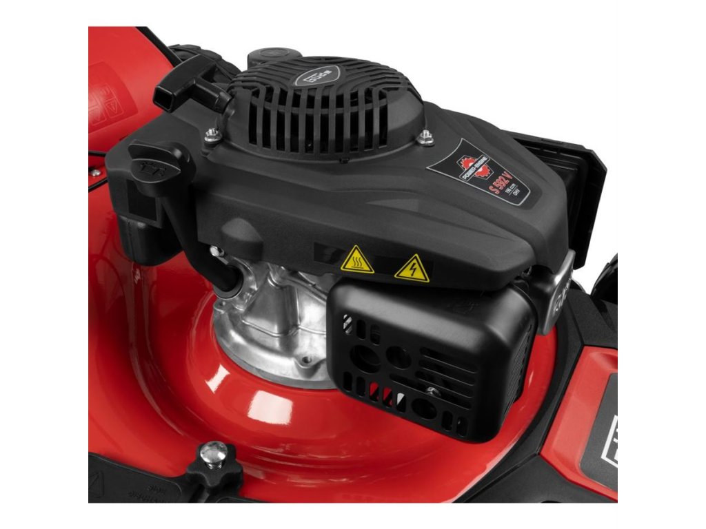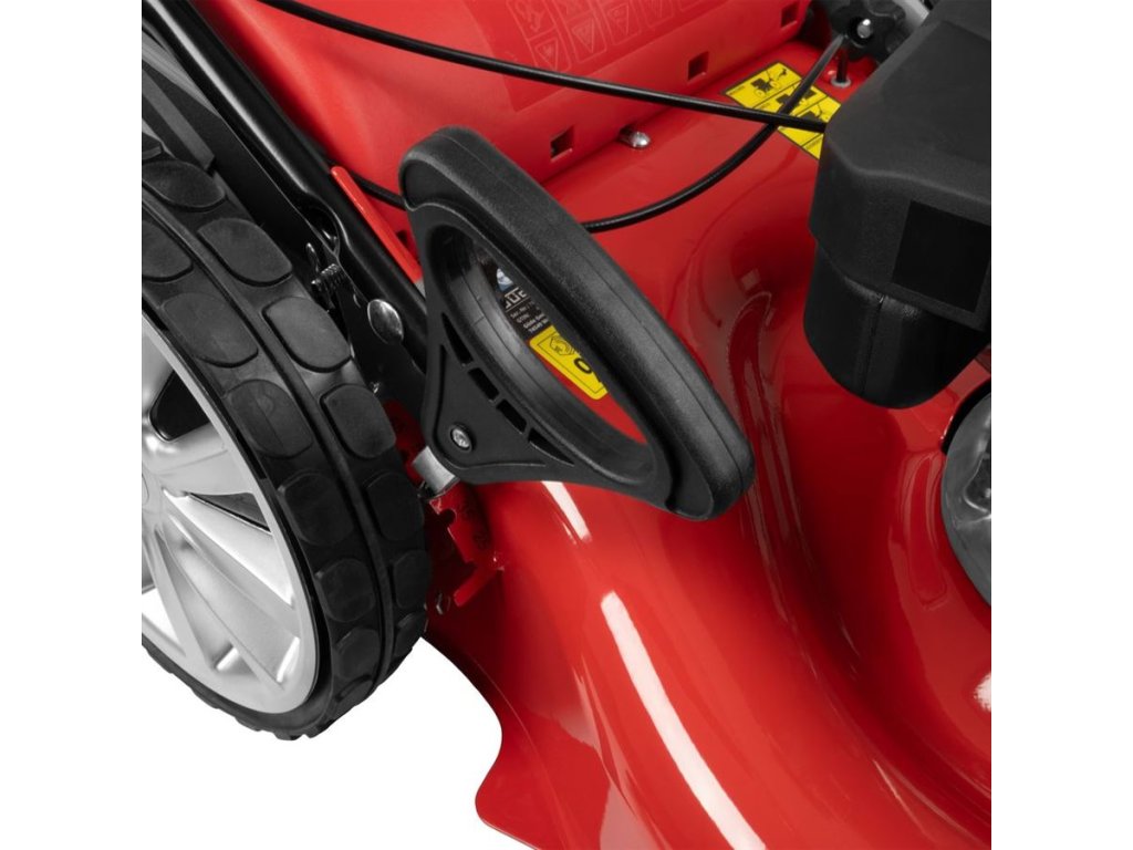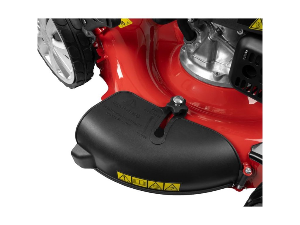 Vybavení - funkce • sečení, sběr trávy do koše, mulčování, boční výhoz • automatický pojezd (pohon zadních kol, rychlost: 3,6 km/hod) • centrální nastavení výšky sečení 6stupňové • 4taktní OHV motor • reverzní startovací systém • výškově nastavitelná řídící rukjeť • velká pojezdová kola