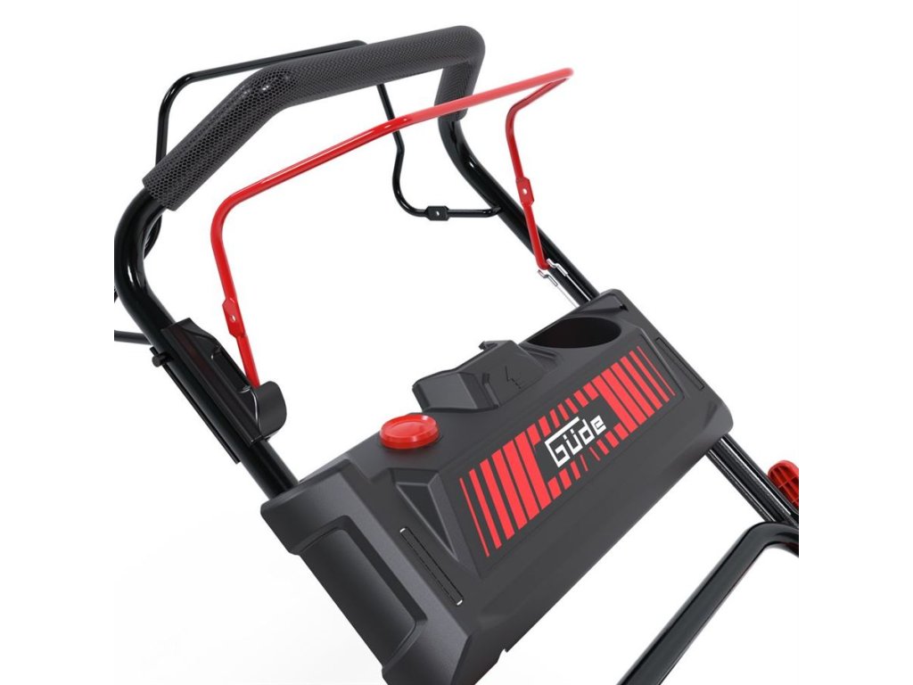 Benzínová sekačka GÜDE s pohonem zadních kol pro velké plochy a náročné zahradní práce. Praktické elektrické startování. Centrální nastavení výšky 7 úrovní (25-75 mm) . Velká kola zajišťují snadnou manévrovatelnost i na nerovném terénu.