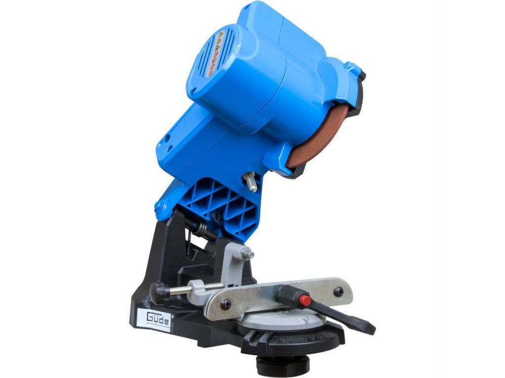 Praktická ostřička pilových řetězů GÜDE, určená k broušení všech běžně používaných typů řetězů elektrických i motorových pil.