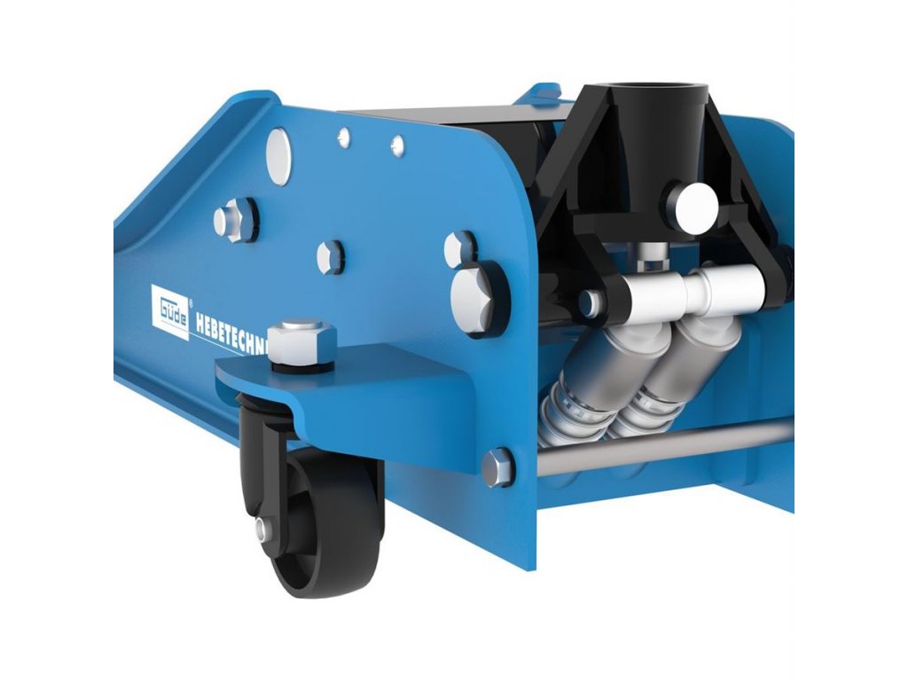 Nízkoprofilový rám (-> min. podjezdná výška: 80 mm; využití: automobily s tuningovými úpravami, sportovní vozy apod.), zdvojený tlačný píst (-> zrychlený zdvih).