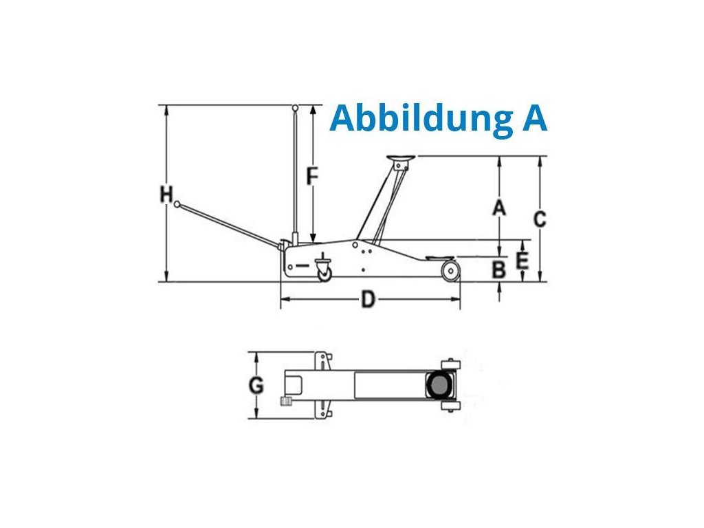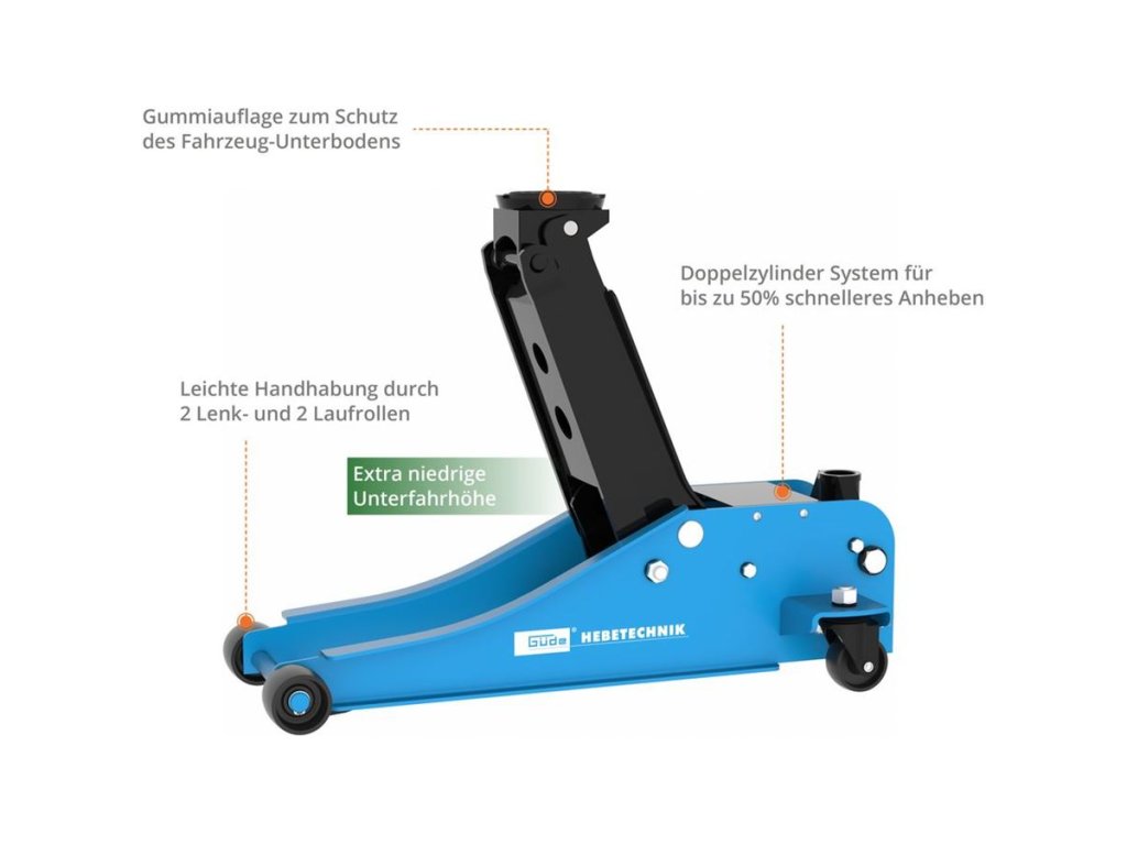 Pojízdný hydraulický hever, vhodný pro zdvihání vozidel se sníženými podvozky (-> max. nosnost: 2,5 tuny).