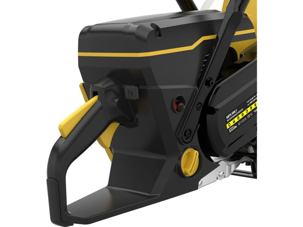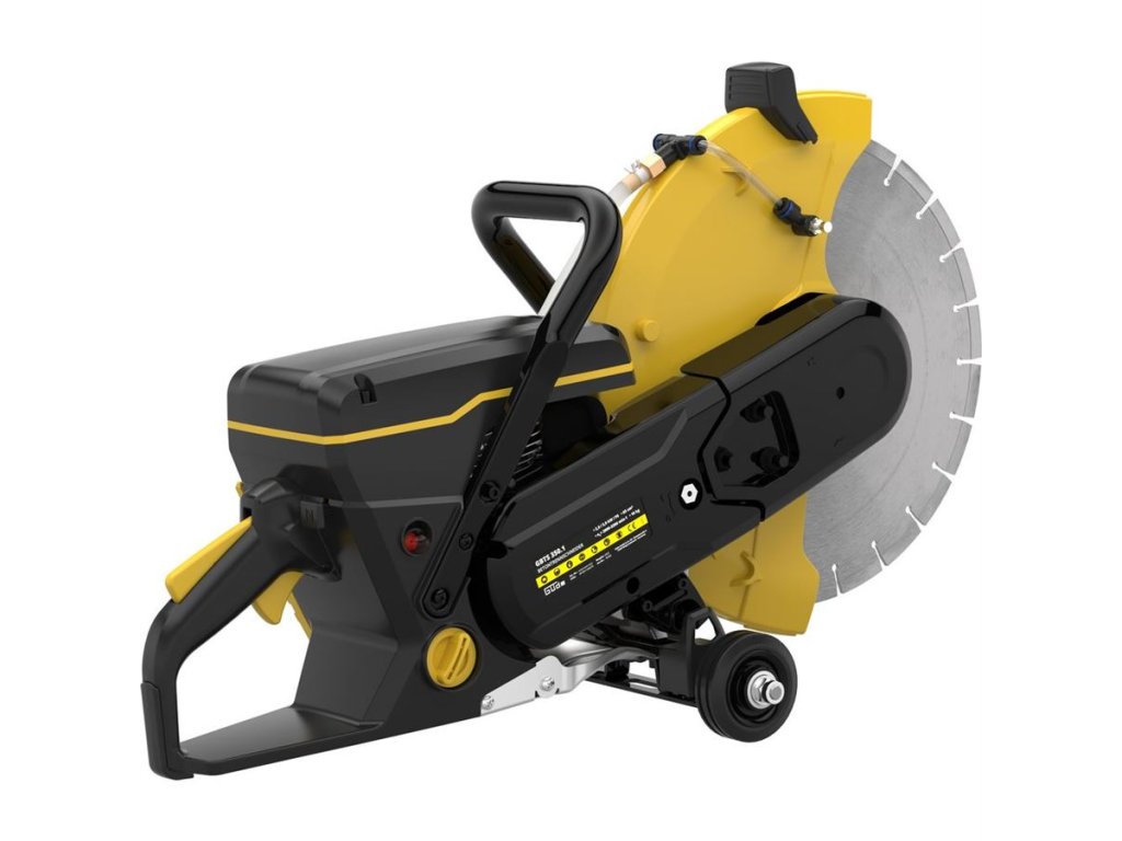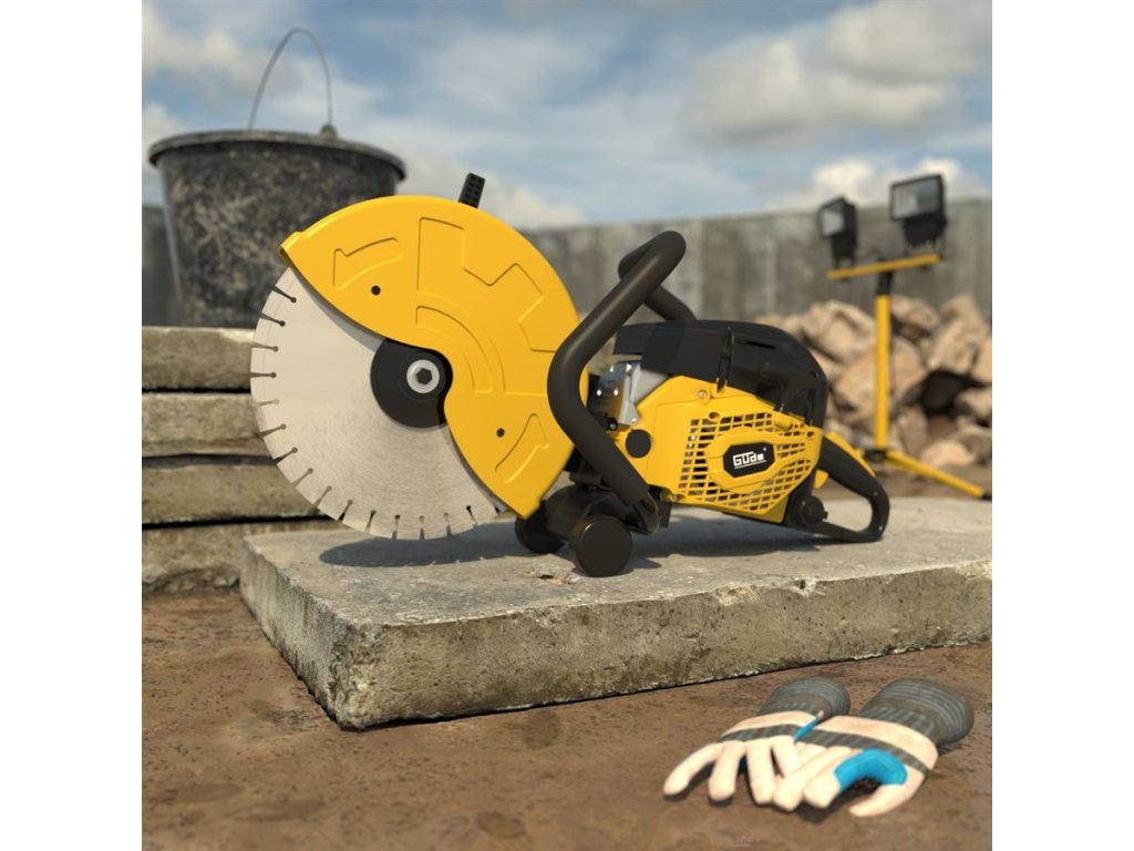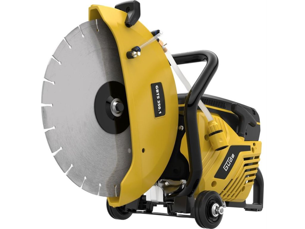 Výkonná benzinová řezačka GÜDE, určená k řezání přírodních i průmyslově vyráběných stavebních hmot a materiálů.