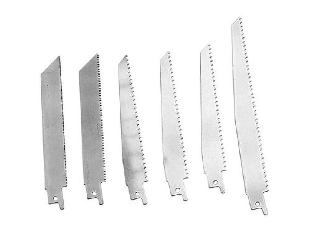 6-dílná sada pilových listů k ocasce USS 1050 R, obj. číslo 58127 2 x 6“ (6TPI) – dřevo 2 x 6“ (18TPI) – kov 2 x 8“ (6TPI) – dřevo.