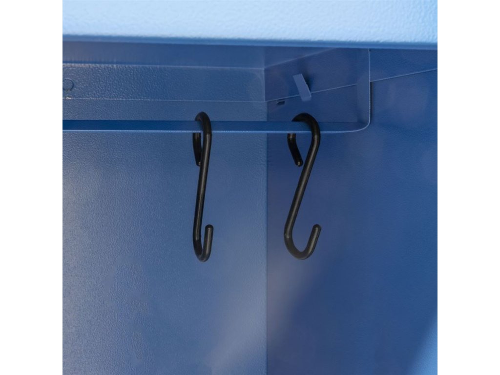 Vybavení: dvoudveřová skříň (-> uzamykání cylindrickými zámky, 2/2 klíče); zesílené dveře (-> vnitřní výztuže), vrchní/spodní odvětrávací štěrbiny, integrované rámečky na jmenovky.