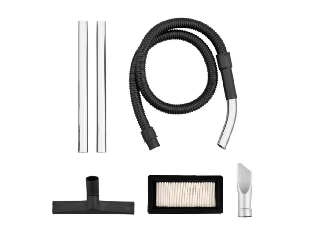 Příslušenství : 1,7 m sací hadice, 2dílná zahnutá ocelová sací trubka (každá 48 cm), podlahová hubice, štěrbinová hubice, Hepa filtr
