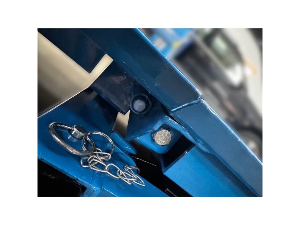 Pohodlné zvedání/plynulé spouštění plošiny pomocí pedálů (2), bezpečná fixace předního kola motocyklu prostřednictvím pohyblivé upínací svorky (-> max. průměr kola: 135 mm), mechanická aretace ve 3 různých úrovních zdvihu (-> 445/610/730 mm).